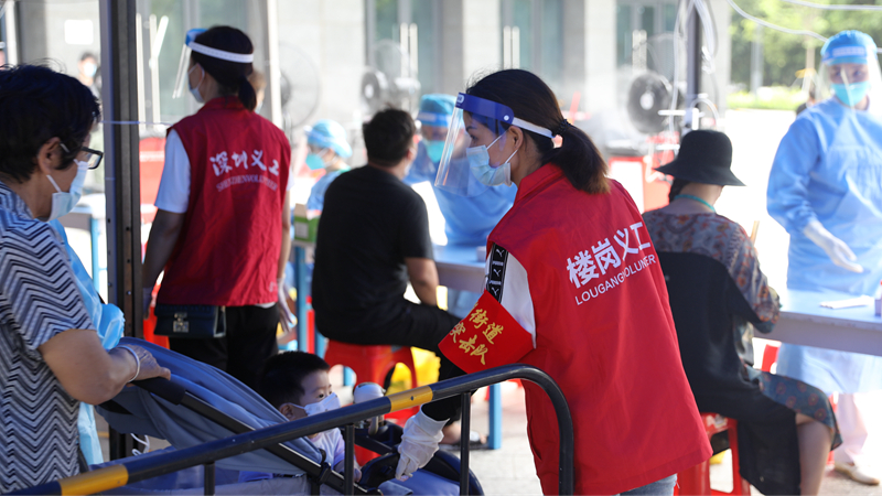 “疫情无情,人间有爱。在参加防疫志愿服务过程中,我深刻的体会到抗疫工作人员的艰辛、付出和勇敢。作为一名青年突击队员,更应该挺身而出、冲锋在前,为疫情防控工作贡献一份力量。”来自松岗街道名立幼儿园团支部的张雪玲在参加核酸检测志愿服务后有感而发。