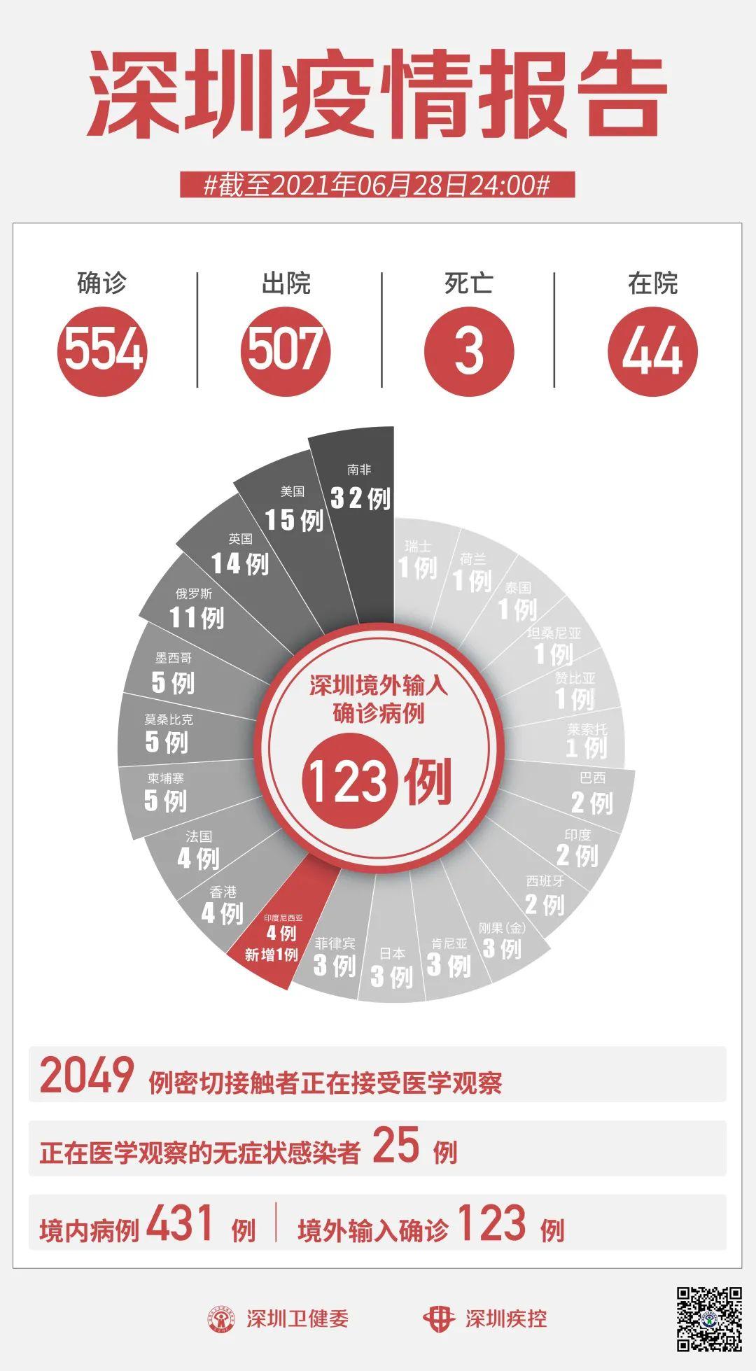 6月28日0-24时,深圳新增1例境外输入确诊病例。