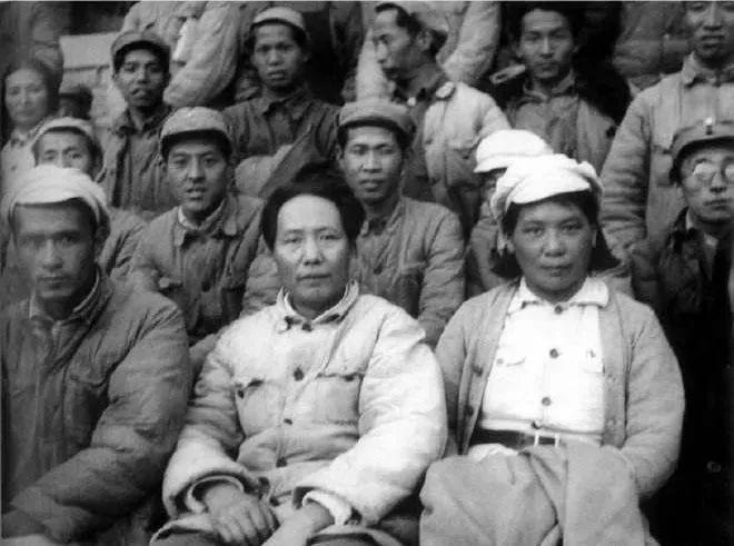 毛泽东和参加延安文艺工作者座谈会的代表合影