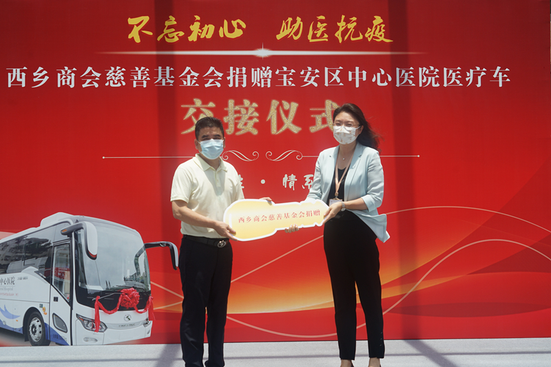 疫情发生以来,西乡防疫抗疫任务占全区的20%,宝安中心医院承担了发热门诊、核酸检测、疫苗接种任务,在压力大、时间紧、任务重、人手不足的情况下,西乡街道各部门、各社区想方设法为医院解决抗疫的实际问题,齐心协力做好防疫工作,多次受到市、区相关领导肯定。在此期间,西乡街道工商联(商会)、慈善基金会也捐赠了大量物资,向多个疫情防控一线积极开展慰问工作,此次捐赠的多功能移动医疗车是一台可提供常规体检、核酸检测、疫苗注射等功能的专用车辆,车上配装X光机、心电图机、超声检查等多种先进医疗仪器设备,可进行内外科的常规检查,包括胸部正位片、心电图、彩超、抽血等多个项目。同时,这台价值175万的多功能医疗车也可根据需要“变身”为核酸采样车和流动的疫苗接种车,将成为西乡防疫工作的一把利器。