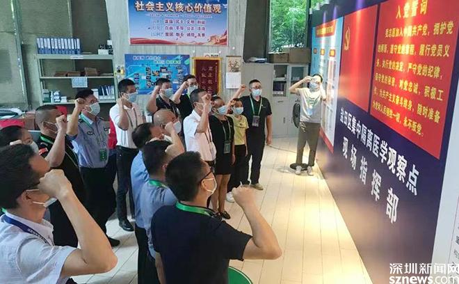 7月1日上午,健康驿站临时党支部的党员干部、预备党员、入党积极分子观看完庆祝中国共产党成立100周年大会后,回到健康驿站一楼,由指挥部临时党支部书记温泉带领大家面向党旗,高举右拳,重温入党誓词,回顾初心使命。大家纷纷表示,通过观看庆祝中国共产党成立100周年大会直播,深受激励和鞭策,接下来,将进一步坚定信念,不忘初心,牢记“人民至上,生命至上”的工作理念,立足工作岗位,全力履职尽责,坚决做好疫情防控工作,筑牢疫情防控红色阵地,以优异的成绩庆祝建党100周年。