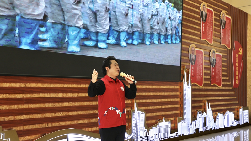 “上上上,我们一起上,曾经立下的誓言,永远记心上……”7月1日下午15点30分,随着区公共文化服务中心文艺专干李希文演唱原创歌曲《一起上》,活动正式拉开序幕。据悉,《一起上》是李希文在下沉社区抗疫期间有感而发而创作的新歌,以音乐的方式致敬一线医务人员,以文艺术的力量赞颂坚守抗疫的志愿者们。