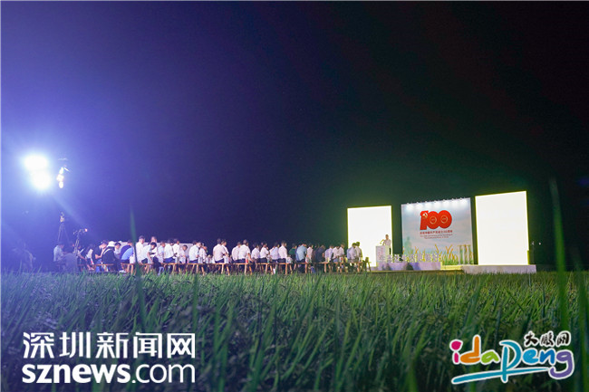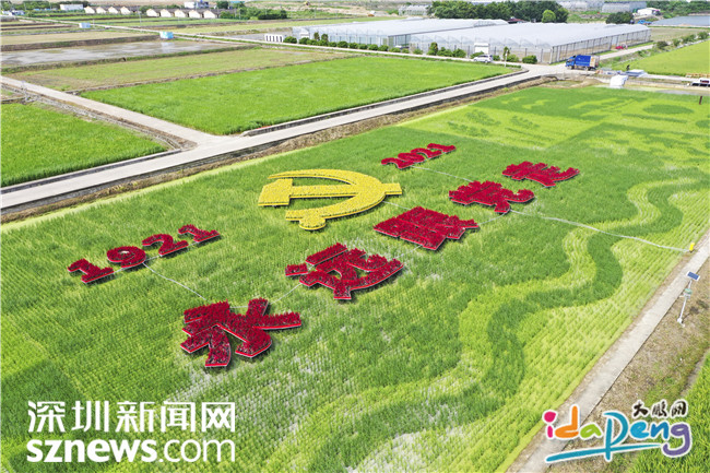 读特客户端·深圳新闻网7月2日讯(记者 周维朕 通讯员 吴依妮 摄影 赖思为 )一半洒落夕阳,一半沐浴夏风,大鹏新区中国农业科学院深圳综合试验基地傍晚的田野中,饱吸阳光的“中深一号”稻谷簇拥成一片绿色海洋,在晚风中哗哗作响,鲜花构成的党徽在稻谷的簇拥中,收拢着丰收的喜悦。
