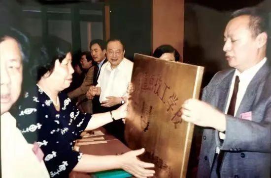 【2000年,一技校被评定为国家级重点技工学校,陈沅沅(左二)接受牌匾】