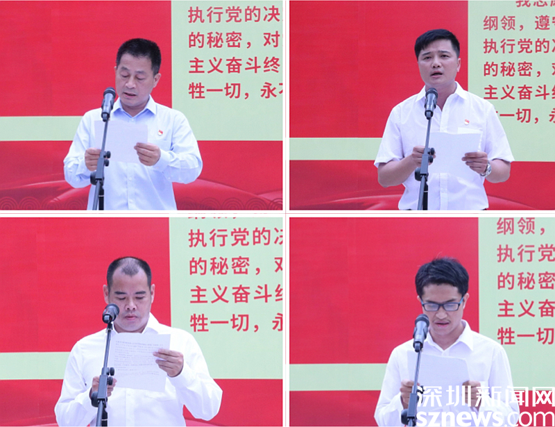 会上,坪地街道党工委副书记、办事处主任黄光柱带领全体党员,面对党旗共同宣誓,并向获得表彰的先进集体、个人表示祝贺。