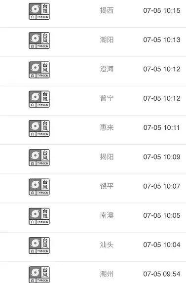 7月首波台风预警信号