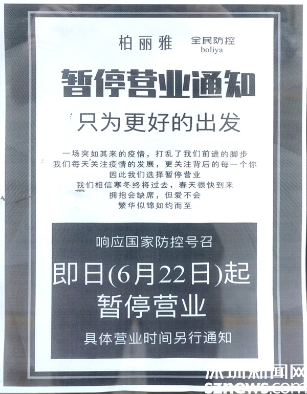 通告一出,令行禁止,经营场所主动响应、积极配合,往日熙熙攘攘的商场显得空旷了不少,餐厅里没有落座的顾客,只有来往奔波的外卖小哥,全区221家网吧、190家KTV、144家游泳池、9家游艺场所全部暂停营业。一时的暂停,是为了更好地出发。新桥街道沙企社区一家美容院在门口张贴告示“暂停营业,只是为了更好的出发,我们相信寒冬将过去,春天很快到来。”字虽寥寥,却包含了温情与希望。