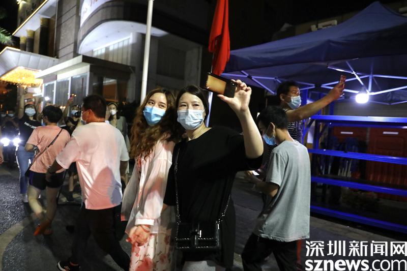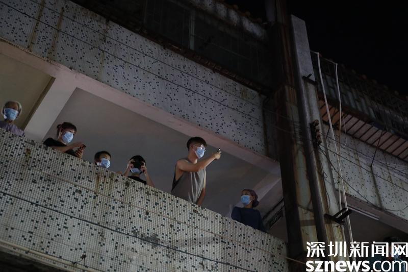 这个夜晚,宝安福围社区灯火通明,居民群众自发走上街头、站在阳台上,用欢呼声、呐喊声分享喜悦,翘首盼望零点时分。