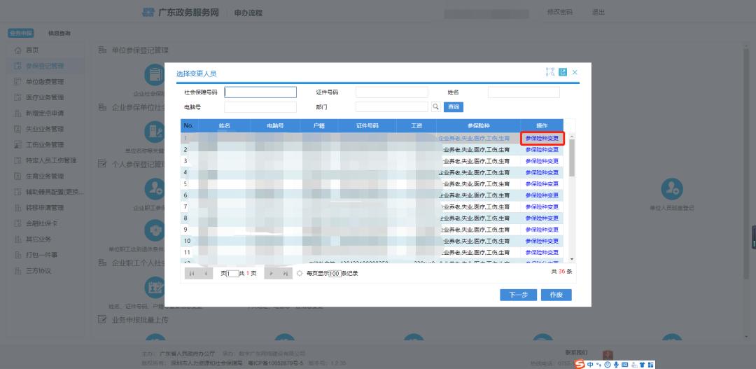 (参保险种变更可批量操作,无需逐一选择变更人员。)