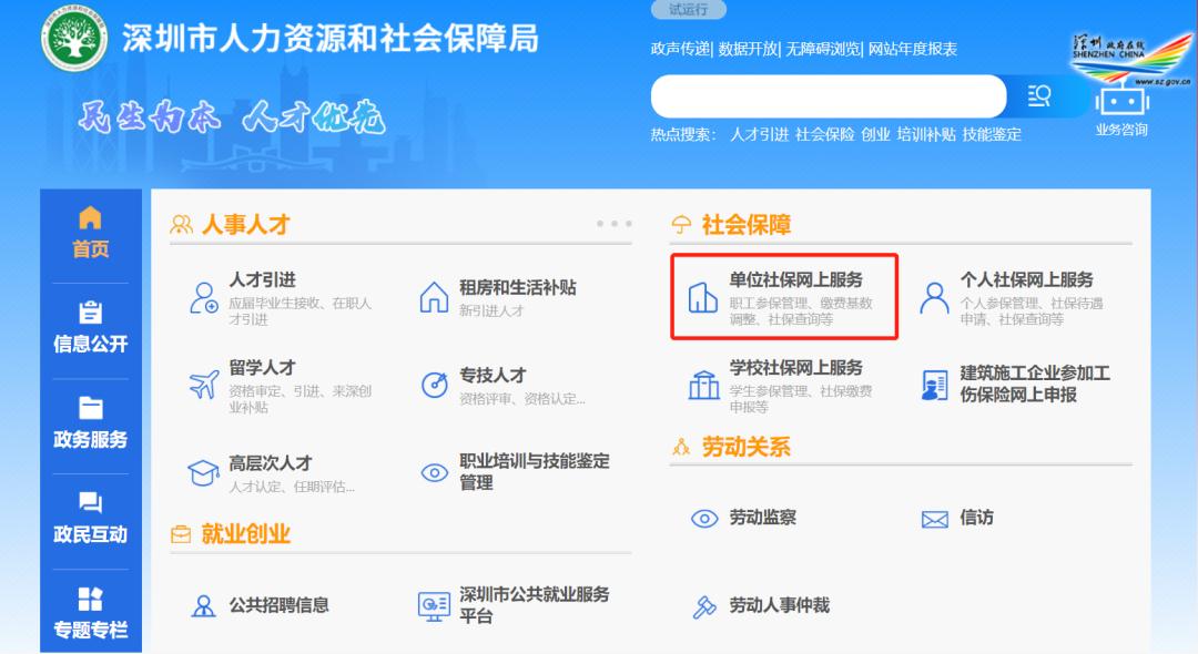 登录深圳市人力资源和社会保障局官网