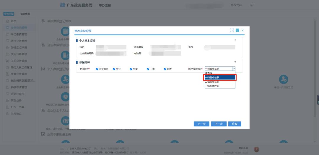 选择需要变更的“医疗保险档次”。