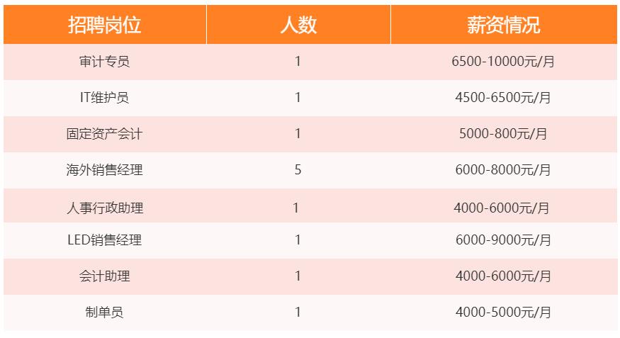 招聘岗位涵盖了
