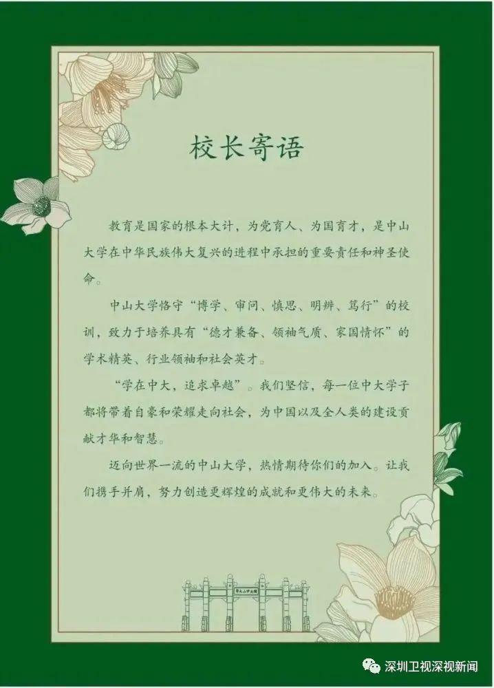 校长寄语书写在通知书第三层。寄语中,承载着校长对新生们的美好祝福、殷切希望,传递着以国家民族为己任的中大精神。