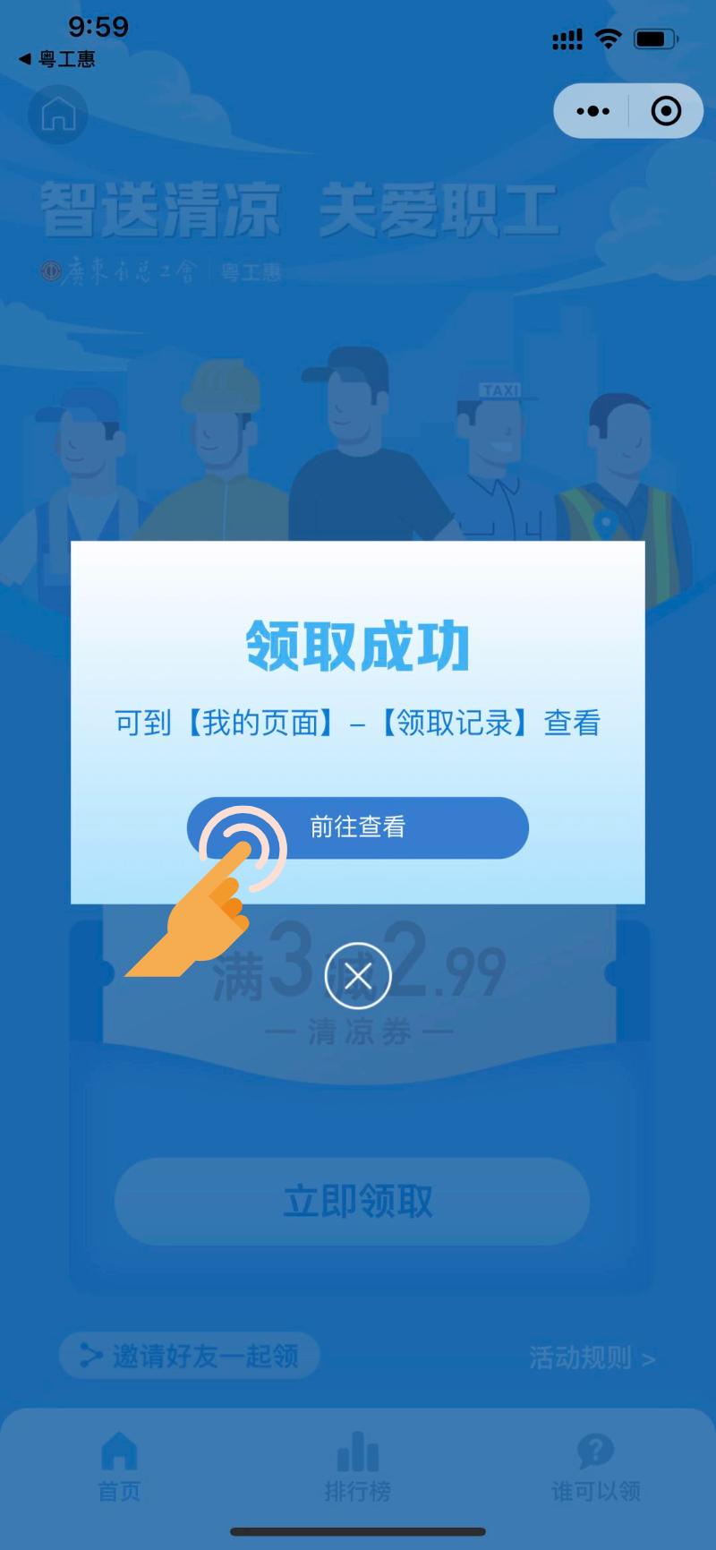 3)立即领取清凉券。