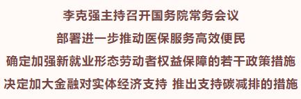 国务院总理李克强7月7日主持召开国务院常务会议,部署进一步推动医保服务高效便民;确定加强新就业形态劳动者权益保障的若干政策措施;决定加大金融对实体经济支持,推出支持碳减排的措施。