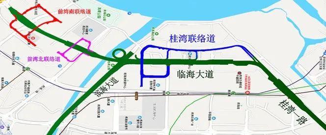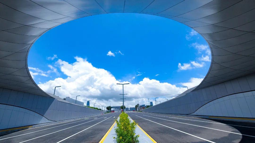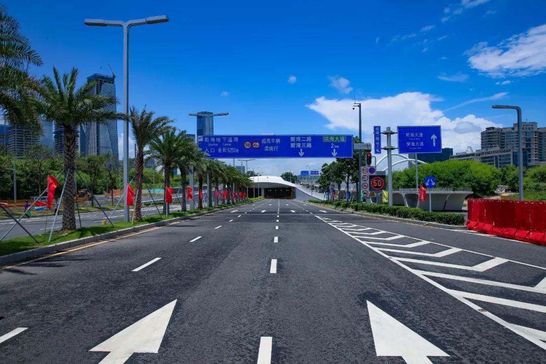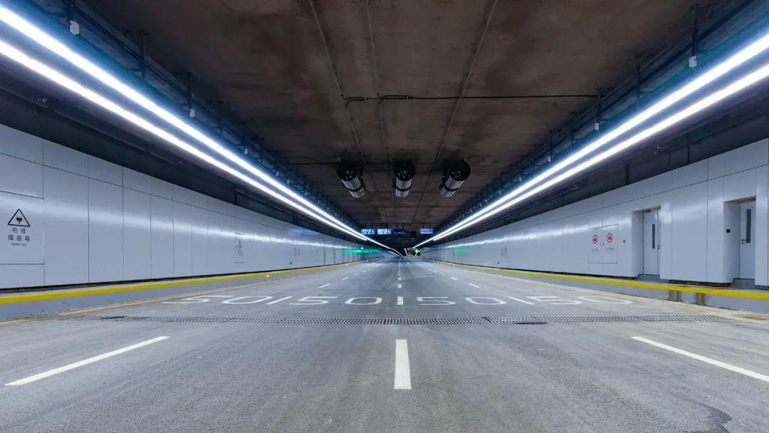 桂湾一路和临海大道地下道路为城市主干道,主线隧道长约3.03km,主车道行车速度为50km/h,双向6-8车道。