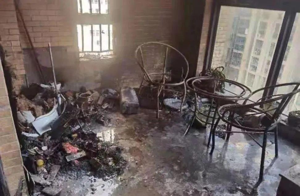 在阳台进行充电,导致电池起火