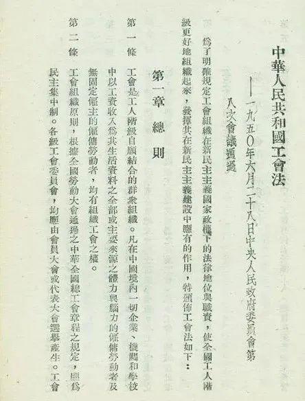 《工会法》共五章二十六条,对新中国工会的性质、组织原则、工会的权利与责任、工会基层组织、工会经费作出了规定。