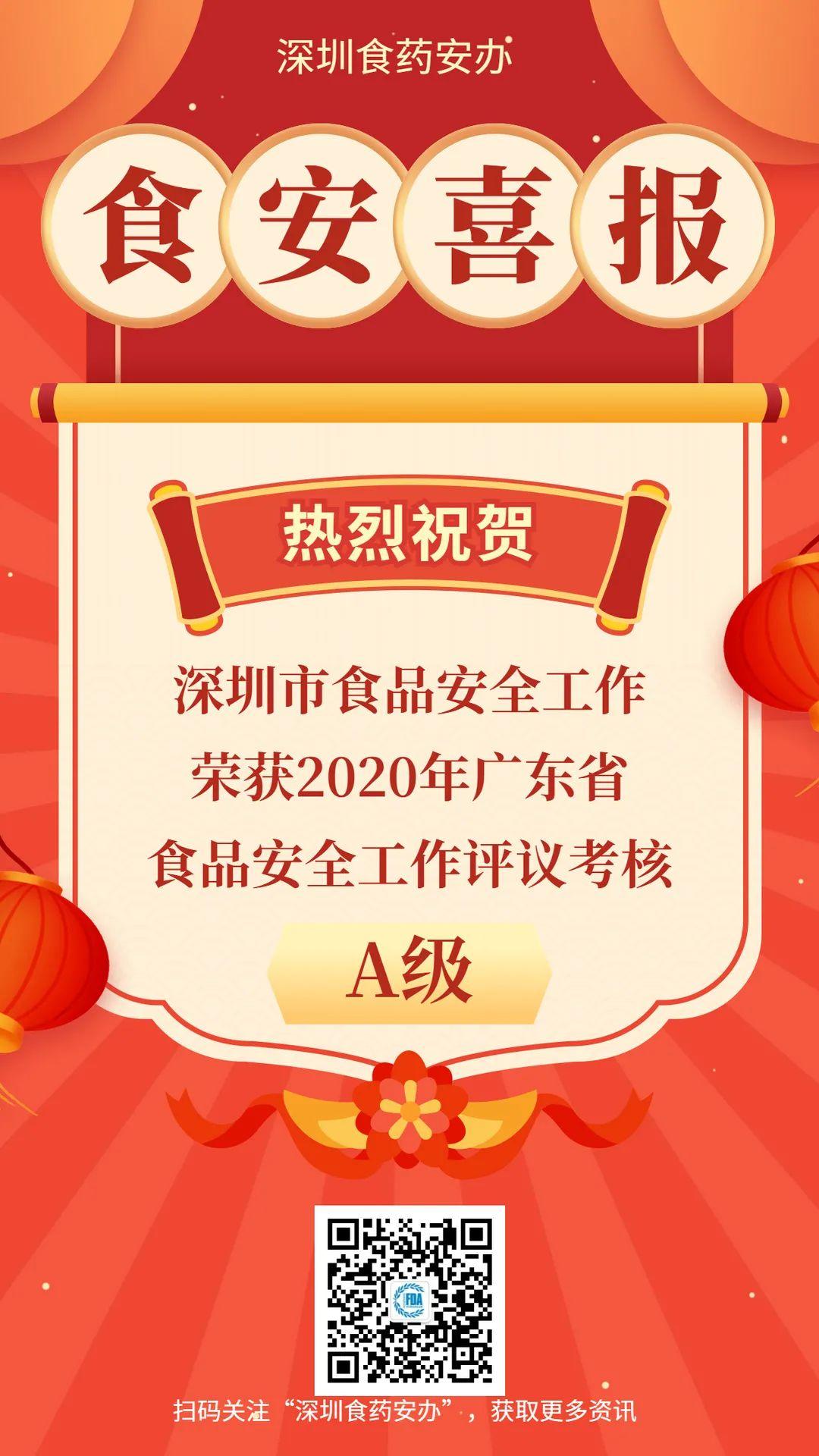 2020年省食品安全工作评议考核,在各市自查自评基础上,由省食安办组织部门评审、专业测评和综合评议,形成考核结果如下(排名不分先后):广州、深圳、珠海、佛山、东莞、中山、江门7个市考核等次为A级;汕头、韶关、河源、梅州、惠州、汕尾、阳江、湛江、茂名、肇庆、清远、潮州、揭阳、云浮14个市考核等次为B级。按照《广东省食品安全工作评议考核办法》规定,对考核结果为A级的地级以上市政府予以通报表扬。考核结果作为对各地级以上市政府领导班子和领导干部进行综合考核评价与实行奖惩的重要参考。