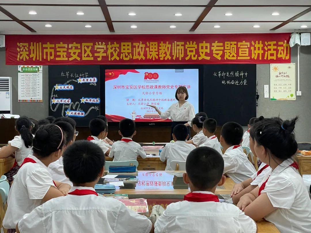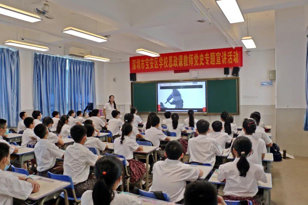 为系统深入加强学生党史学习教育工作,教育引导青少年学生学史明理、学史增信、学史崇德、学史力行,厚植爱党、爱国、爱社会主义的情感,近日,宝安区教育局成立宝安区思政课教师党史专题宣讲团,教育引导中小学生了解党的光辉历史、感悟党的初心使命、领会党的创新理论、体认党的精神谱系、传承党的红色基因,全面深化爱党、爱国、爱社会主义思想觉悟,自觉做到听党话、跟党走。