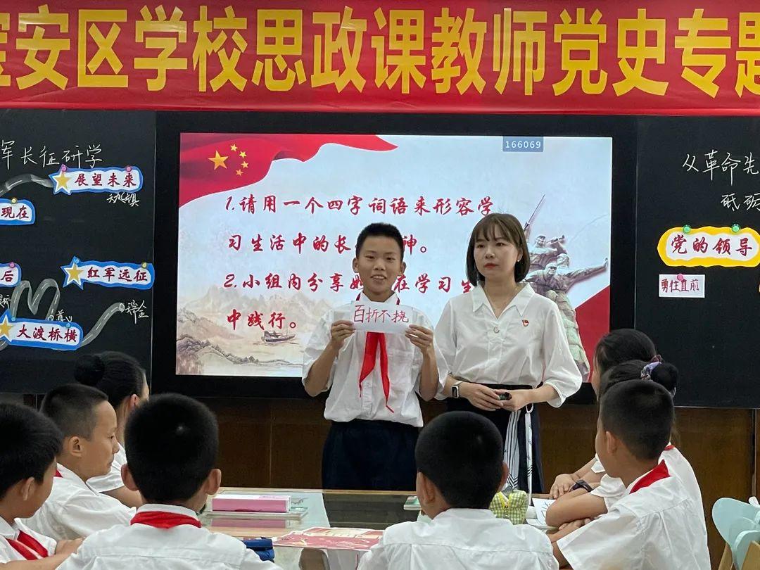 她带领学生回顾红军长征小故事,引导学生了解中国共产党的正确领导是胜利的关键因素。从长征精神中砥砺奋进力量,学生们联系生活实践,列举了在新时代中长征精神的体现。