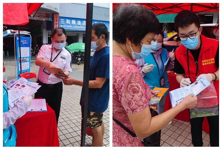活动包括设点宣传、走访排查、线上培训三部分。在各街道食药志愿U站设点宣传,现场派发宣传单张200余份,接受群众咨询85条,检测蔬菜30批次;走访排查安全隐患,提醒落实疫情防控措施,走访排查累计解答经营者咨询事项195条,派发宣传单张300余份,现场张贴“拒绝铺张浪费、从我做起”宣传海报25份;在助力“三考”保障同时,提前部署食品安全宣传活动,通过在学校宣传栏、学校食堂的明厨亮灶屏幕、家长交流群等多途径发布食品安全宣讲专题及宣讲小视频,累计宣教8万余人次。