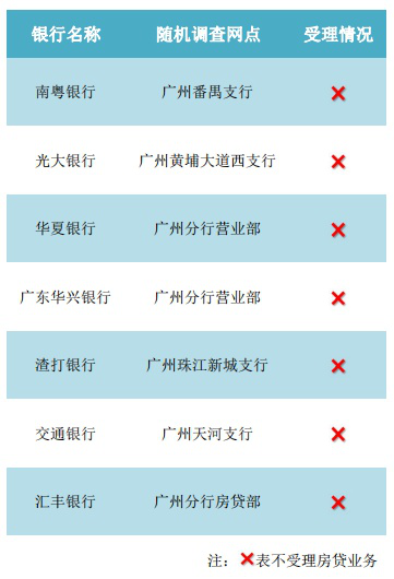 “按揭我们停了,不做了现在,你问问其他行,华夏现在暂时不接单了。”华夏银行广州分行营业部一名客户经理对记者表示,从今年1月起,该行已暂停受理二手房按揭贷款申请。