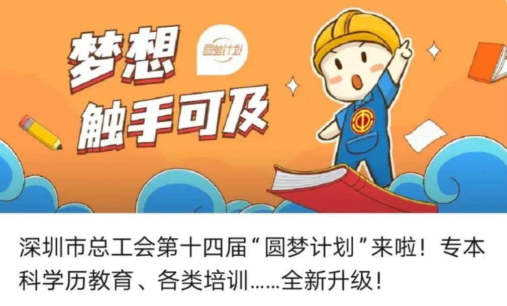 “圆梦计划”是深圳市总工会首创的职工教育帮扶品牌,由深圳市职工教育学院承办,采用教育帮扶并于国内知名高校合作的模式开展,旨在为职工(特别是一线职工、困难职工、农民工)学历和技能提升搭建平台,激励职工终身学习,岗位成长。