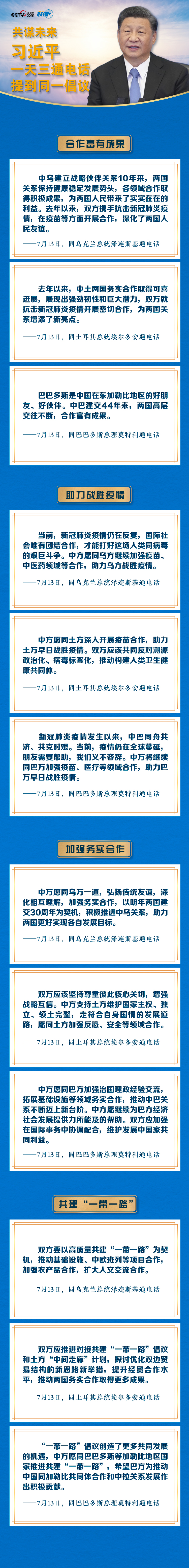 联播+ 7月13日,习近平主席分别同乌克兰总统泽连斯基、土耳其总统埃尔多安、巴巴多斯总理莫特利通电话。在通话中,习主席分别与三国领导人忆往昔、言现在、话未来,就新冠肺炎疫情、务实合作、“一带一路”倡议等共同关心的话题交换了意见。