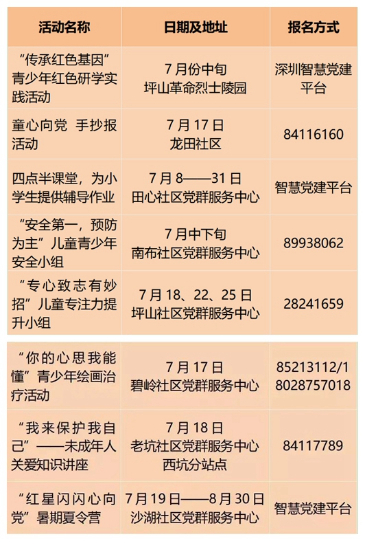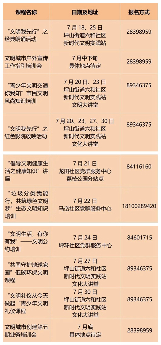 读特客户端·深圳新闻网2021年7月15日讯(记者 杨涛)近日,坪山区一波精彩纷呈的文明实践课对外公布,特别针对青少年开设相关课程,让他们度过一个有意义的假期。