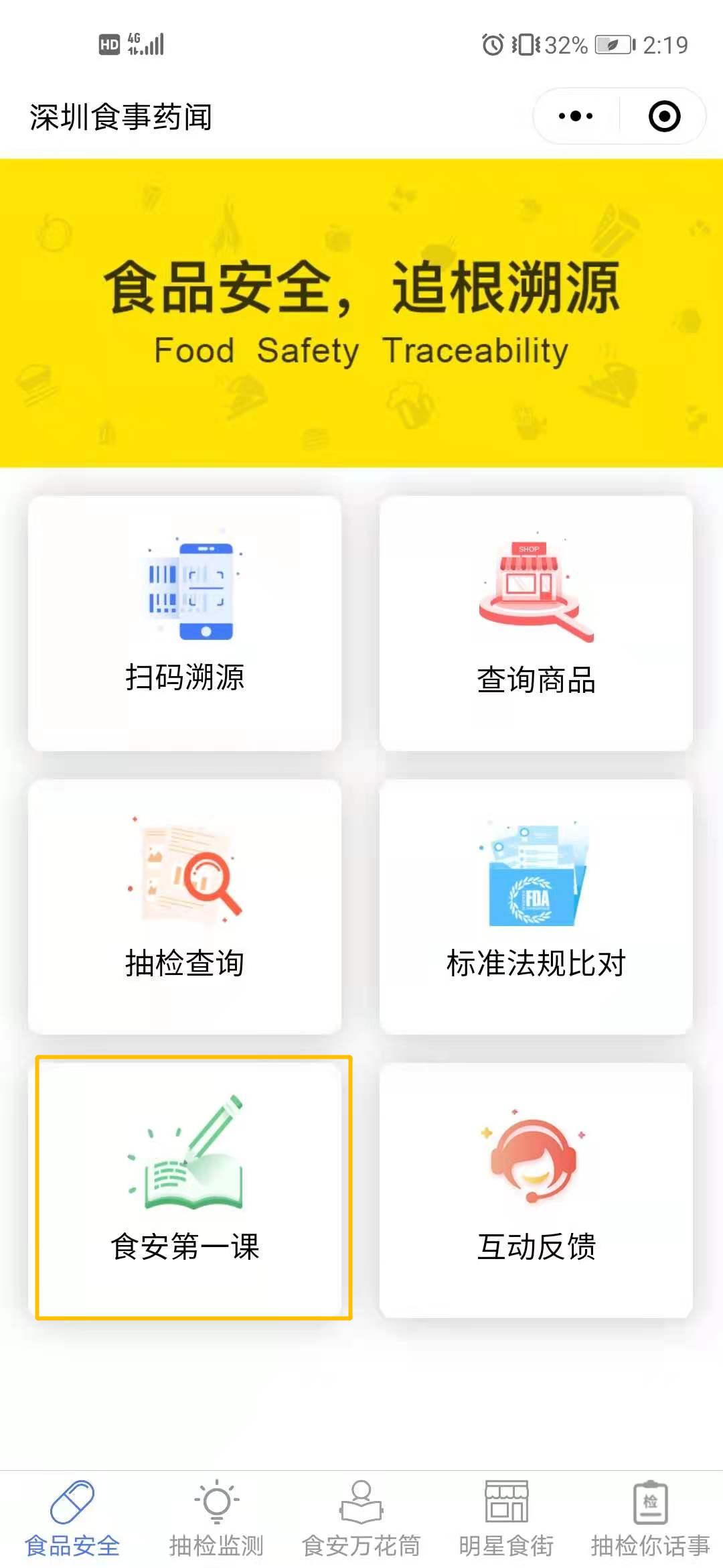长按识别下方葵花码,进入小程序后,点击“食安第一课”进入答题系统。