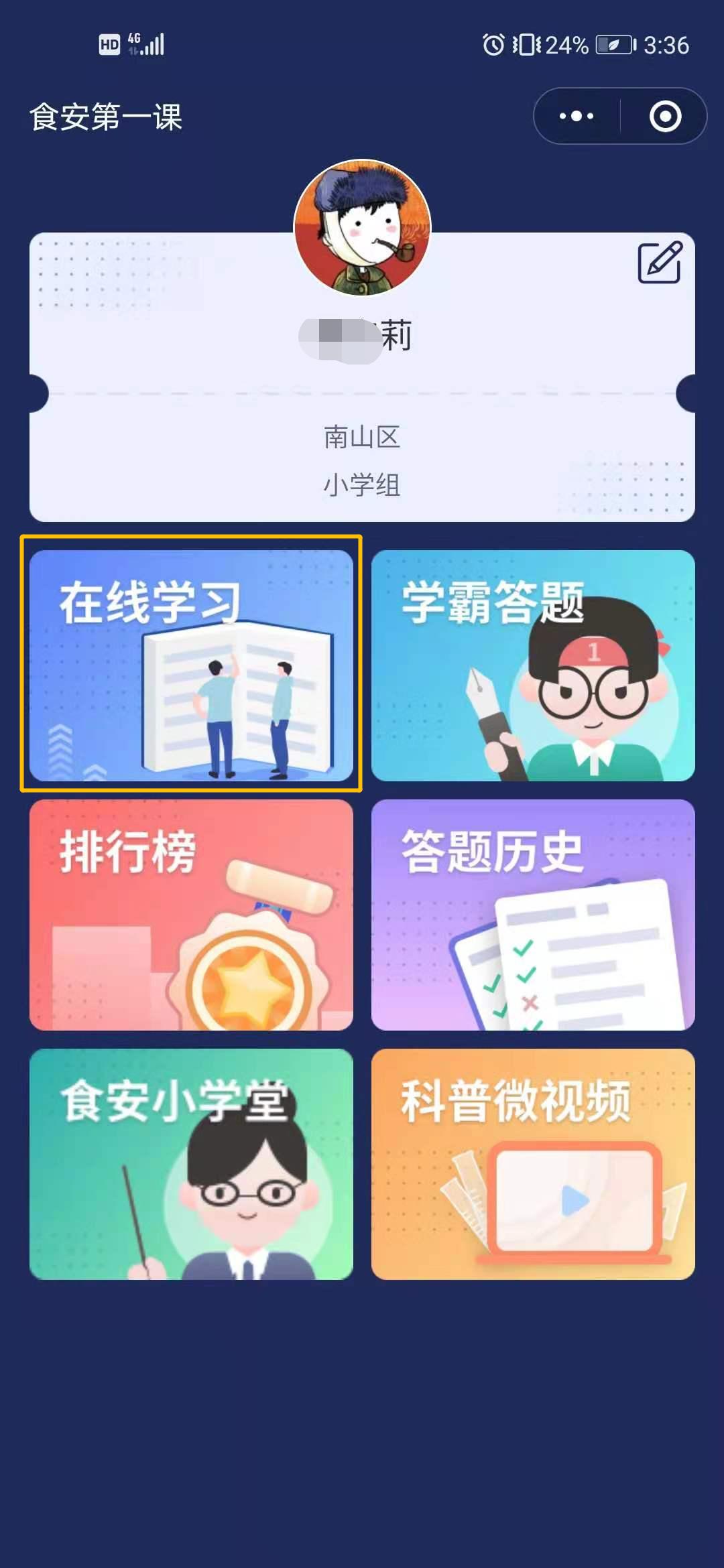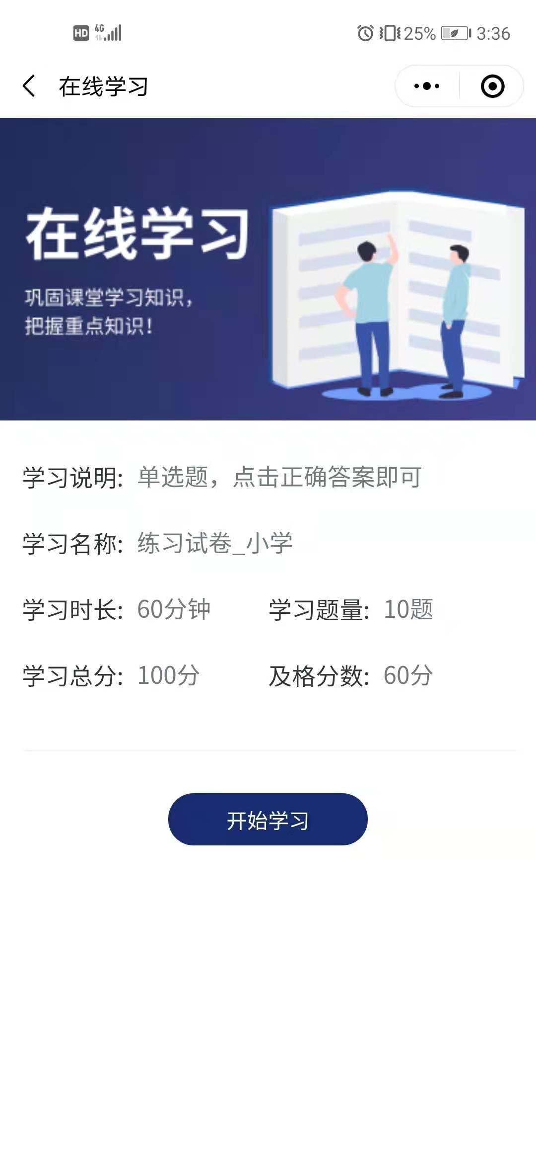 试题分为“在线学习”和“学霸答题”阶段,建议先完成“在线学习”阶段,再进行答题。