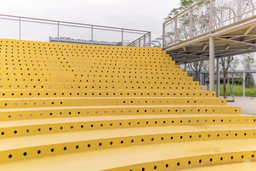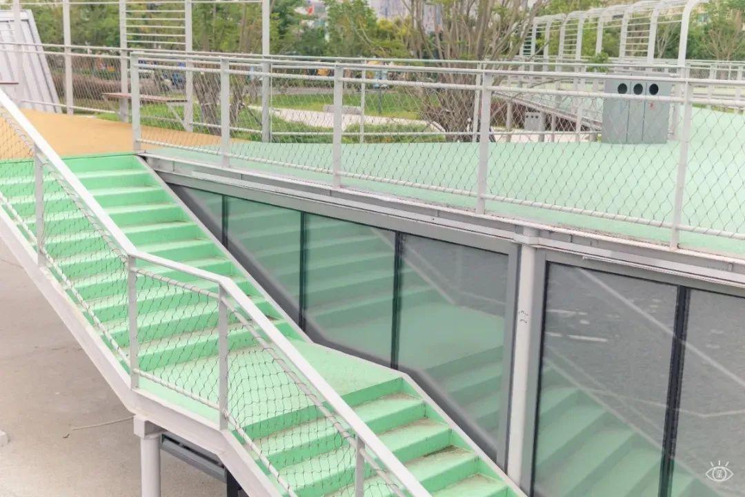 因为主打彩色,廊桥就连楼梯也是彩色的,这样色彩丰富的廊桥在深圳可不多见。