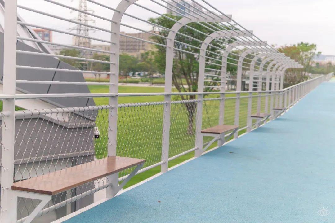红桥每隔大概350米还会有一个出入口,方便大家上下桥。其中最特别的当属螺旋楼梯了,曲线优美且充满设计感。