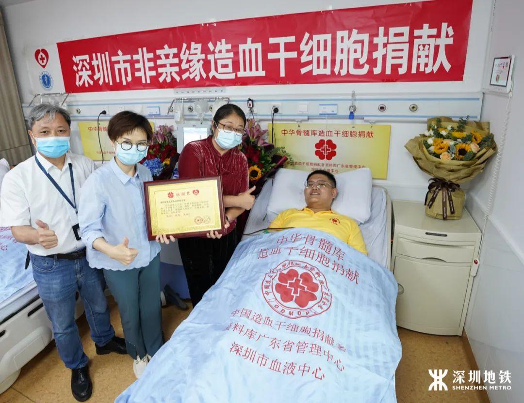 这是近些年深圳地铁第四例员工捐献造血干细胞。在2018年5月15日,肖代、谢文志两位深圳地铁员工就在同一天捐献造血干细胞,而两人恰好也是中华骨髓库广东省分库的第599、600例造血干细胞捐献者随后,又有地铁运管办员工林维英捐献造血干细胞。深圳地铁将坚持“从心出发、为爱到达”的服务理念,承担更多社会责任。