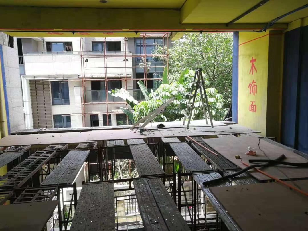 【2】扩大承重墙上原有的门窗尺寸,拆除连接阳台的砖、混凝土墙体。