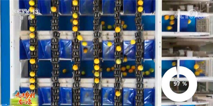 央视网消息:不仅在种植上能够体现科技范儿,安远县在脐橙采摘和加工上也有黑科技,现在已经不是安远脐橙的采摘季节了,但是我们用其他的橙子来做一个实验,我们来一起看一下怎么在流水线上用红外感应系统来无破损测糖。