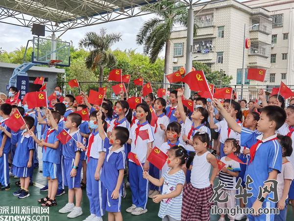读特客户端·深圳新闻网7月18日讯(记者 杨维易 通讯员 廖静莹)“没有共产党就没有新中国,共产党一心为民族……”一首熟悉的红色旋律在福城街道茜坑老村篮球场内唱响,吸引了不少居民驻足围观。7月18日上午,在茜坑社区“灿烂少年、向梦前行”暑期夏令营开班仪式上,80多名身穿校服的“红领巾”用他们稚嫩而真诚的歌声,唱出心中对党和国家的热爱之情,孩子们的暑期生活翻开充满幻想、梦想与爱的画卷。