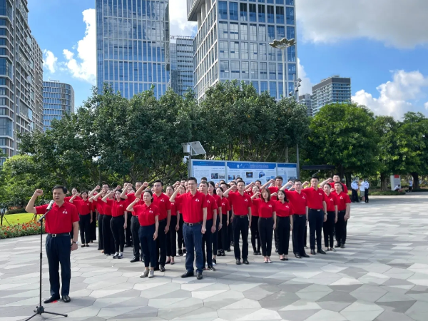 仪式上,前海合作区党工委新发展党员排成“党徽”形列队,在新时代新征程中踏浪前行。利用前海红色资源进行入党宣誓活动,既是前海践行“永远跟党走”群众性主题宣传教育活动,也是一场生动的改革开放史实践教学活动。