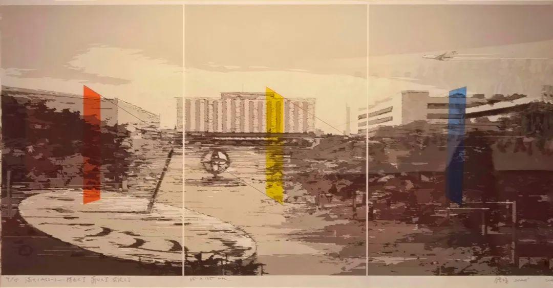 钟曦 《深大(1983—)特区大学 窗口大学 实验大学》135x65cmx3 版画 2020