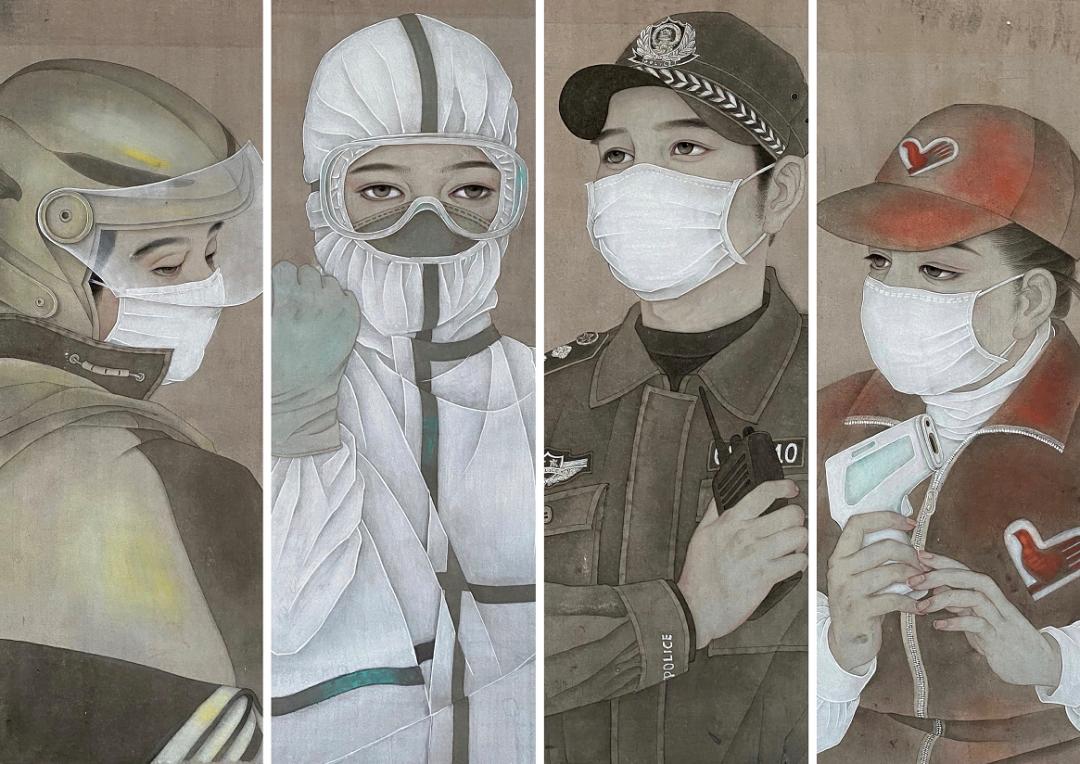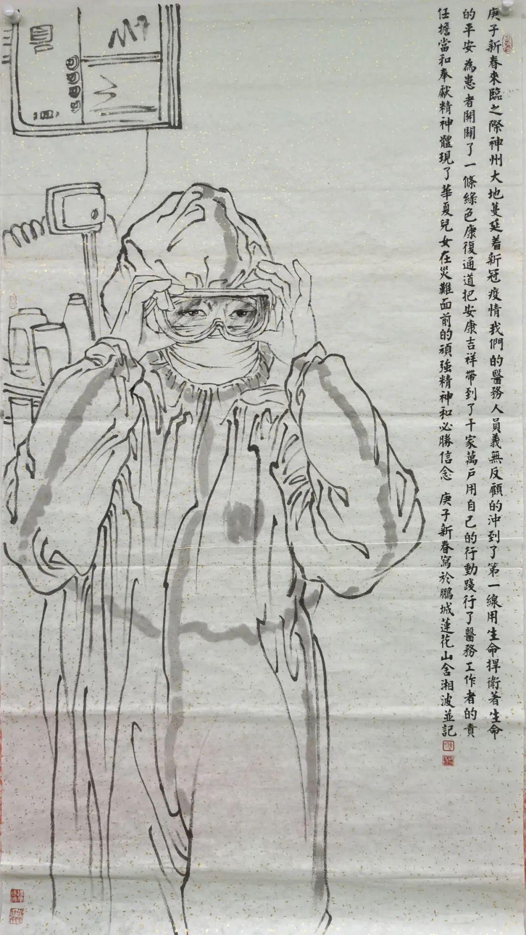 陈湘波 《最美逆行者》 176X97cm 纸本水墨 2021