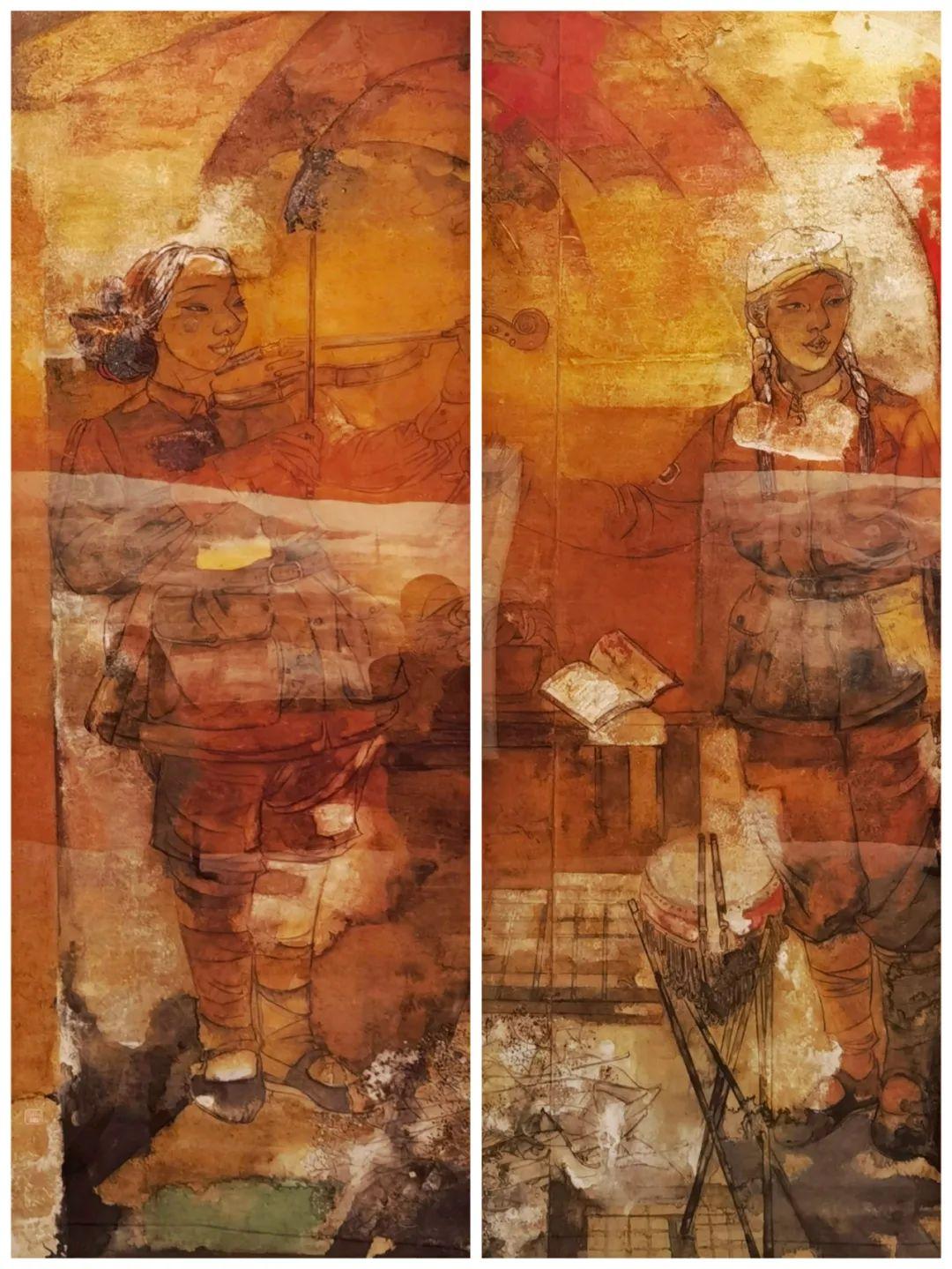 刘向东 《墙》 210x105cm 布上水彩 2016