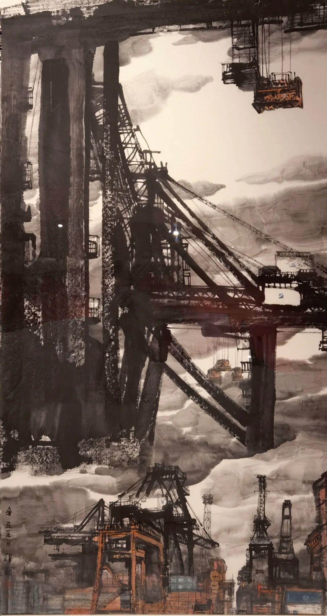 邹明 《海港巨擎》 98x180cm 国画 2021