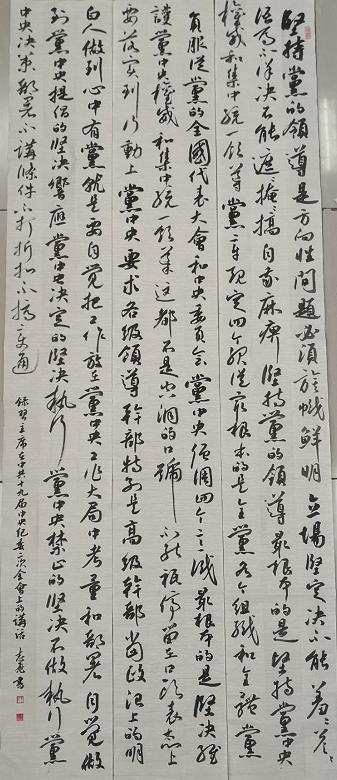 王志飞 《习主席在中共十九届中央纪委二次全会上的讲话》 180x72cm 书法