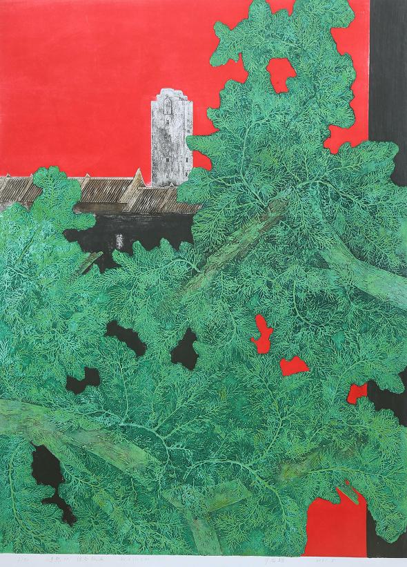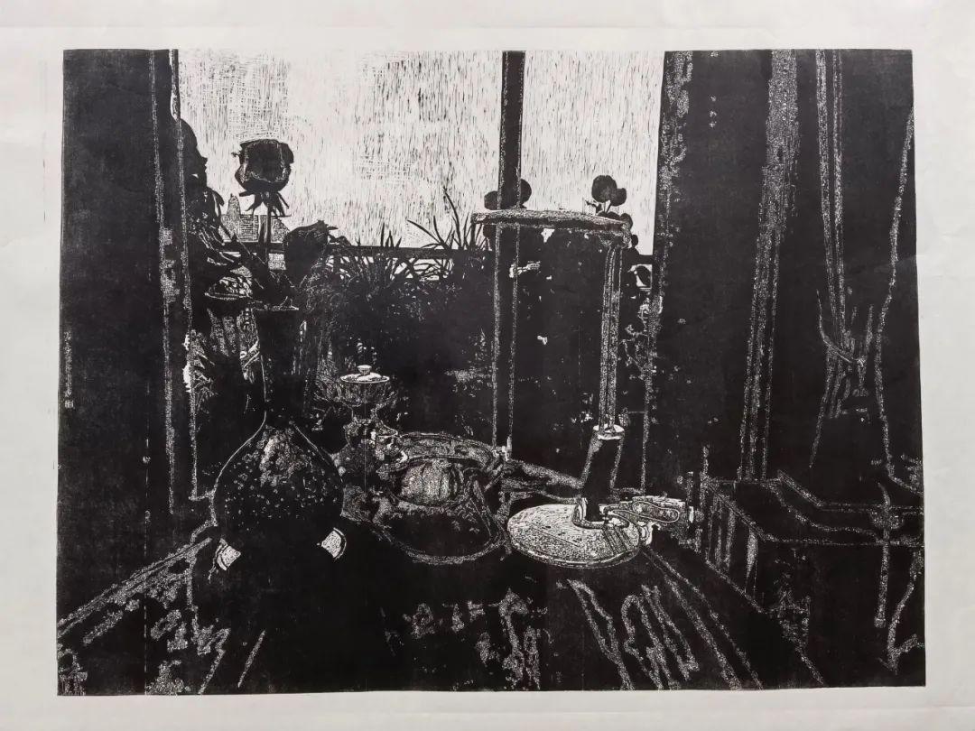 郑陈坚 《窗前的红玫瑰》 75x110cm 版画 2021