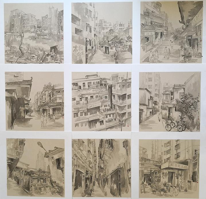 周蓉 《城市一角---城中村系列》(1--9) 45x45cm 2019