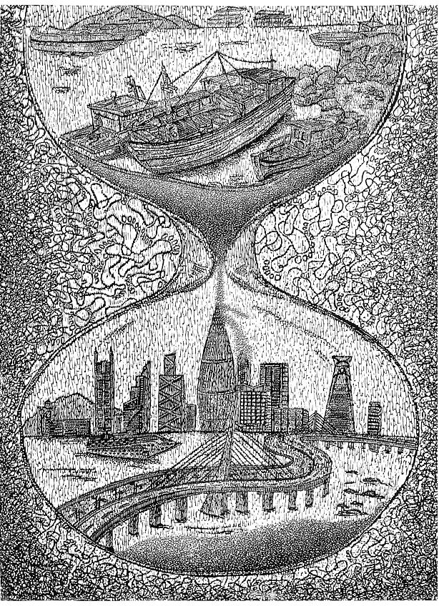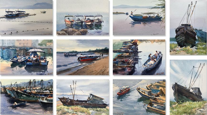 雷水云 《大湾区的“船生活”》 78x108cm 水彩