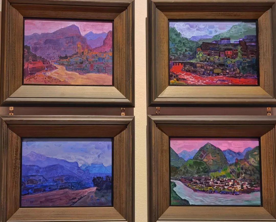 梁剑 《赤水河—太平古镇》30x40cmx4 油画 2021
