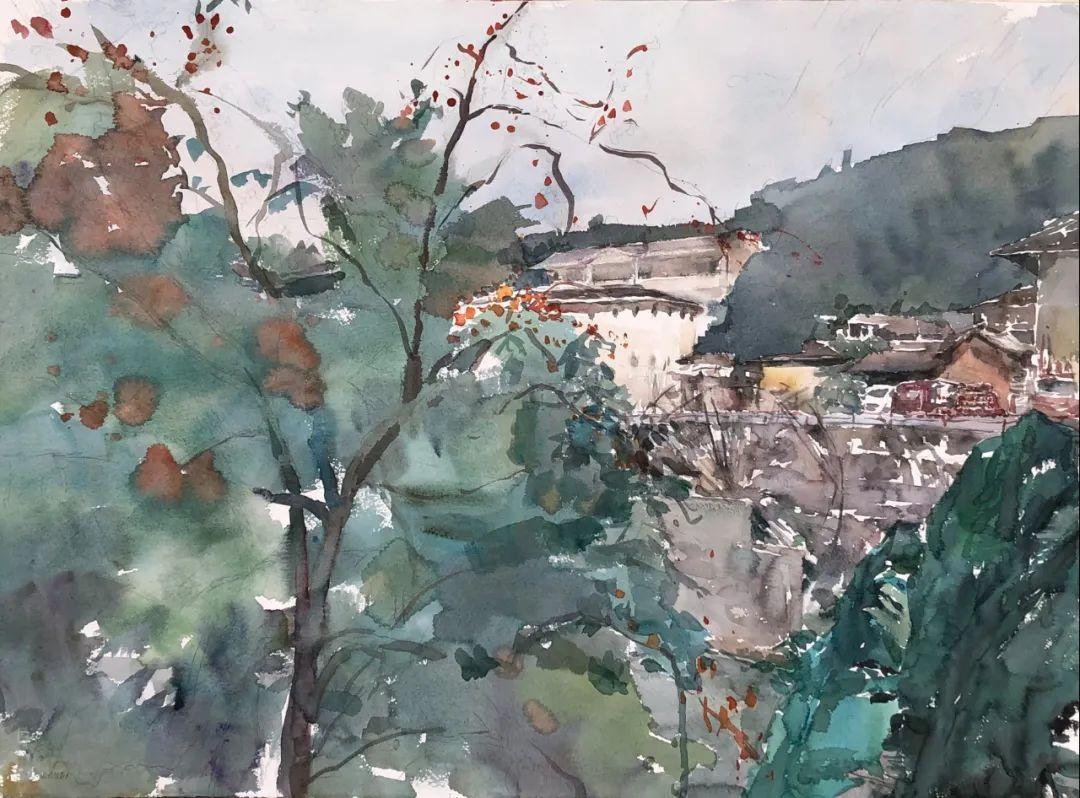 梁宇 《古田记忆》 61x46cm 纸本水彩 2021