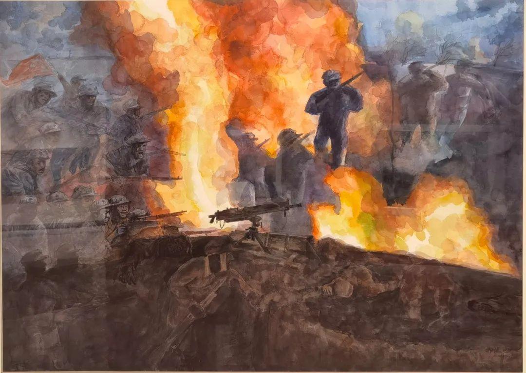 郝强 《松毛岭战役》110x95cm 水彩 2021